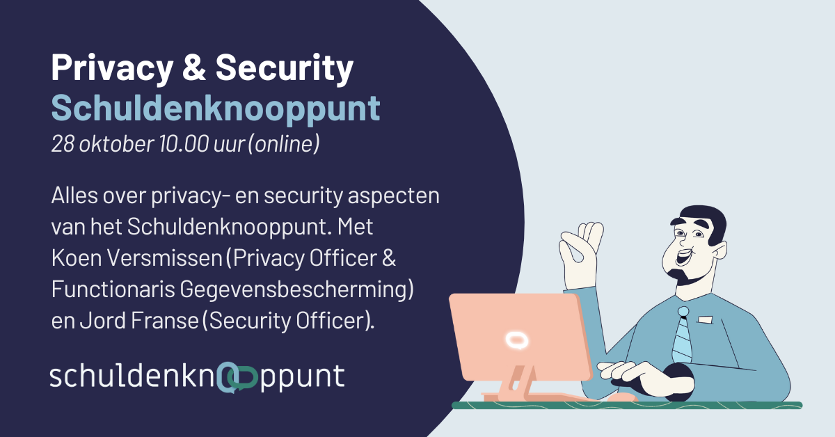 Ben je privacy of security officer en wil je meer weten over de aandachtspunten die binnen het kader van privacy en/of security van het Schuldenknooppunt voor de komende periode van belang zijn? Meld je dan aan voor het Privacy & Security overleg op 28 oktober.